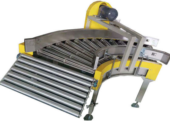 Le sac de empaquetage est transporté pour courber le convoyeur et le sac donnant la direction sera changé par l'effet de rotation de la courbe et réaliser de diverses fonctions des prochaines stations. L'utilisation des rouleaux mis en cage peut effectivement empêcher les sacs de glisser sur le convoyeur, réaliser la fonction de cacher des sacs par le contrôle photoélectrique de détection et de programme de PLC.